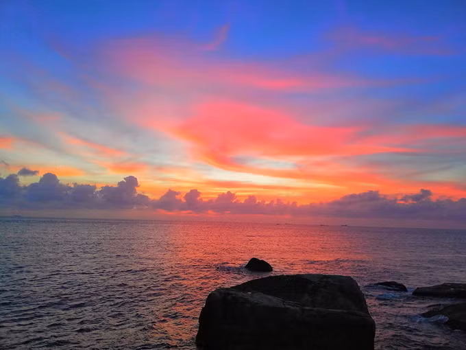 Đứng từ trên đỉnh, bạn sẽ nhìn thấy mặt trời từ dưới biển mọc lên, bầu trời với đủ sắc màu rực rỡ.