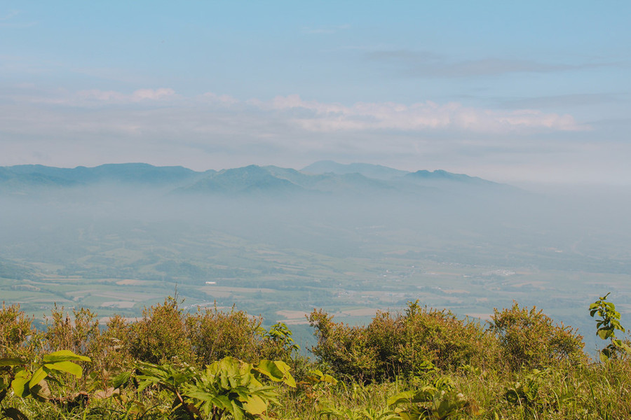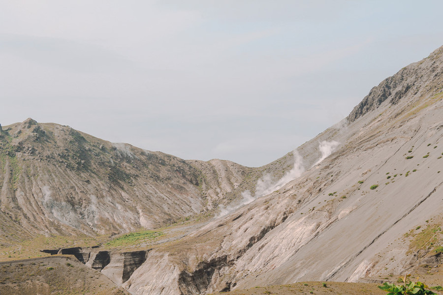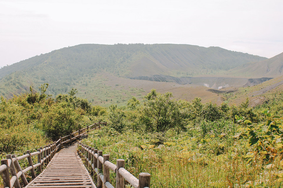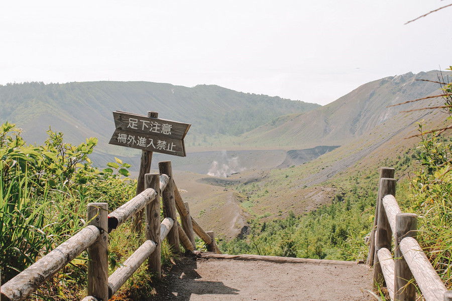 Thế nhưng, tôi lại len lỏi qua những bậc thang bên dưới, với đoạn trekking được ghi chú là 40 phút. Tôi thoăn thoắt đôi chân đi xuống vì đoạn xuống dốc và dễ dàng. Chỉ tầm 15 phút, tôi đến được trạm 2. Tại đây, tôi có thể nhìn theo góc khác của núi Usu, nhìn về phía vực núi lửa khói bốc lên ngun ngút.
