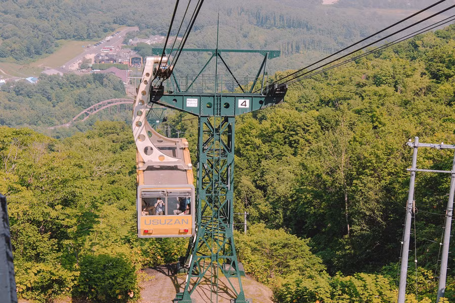 Một đường cáp treo trên núi Usu giúp mọi người có thể phóng tầm nhìn ra Showa-shinzan, một ngọn núi trẻ khác với đặc điểm dễ nhận biết là đỉnh núi màu đỏ đất. Để lên cao và ngắm nhìn núi Usu, bạn cần phải di chuyển bằng Usuzan Ropeway.