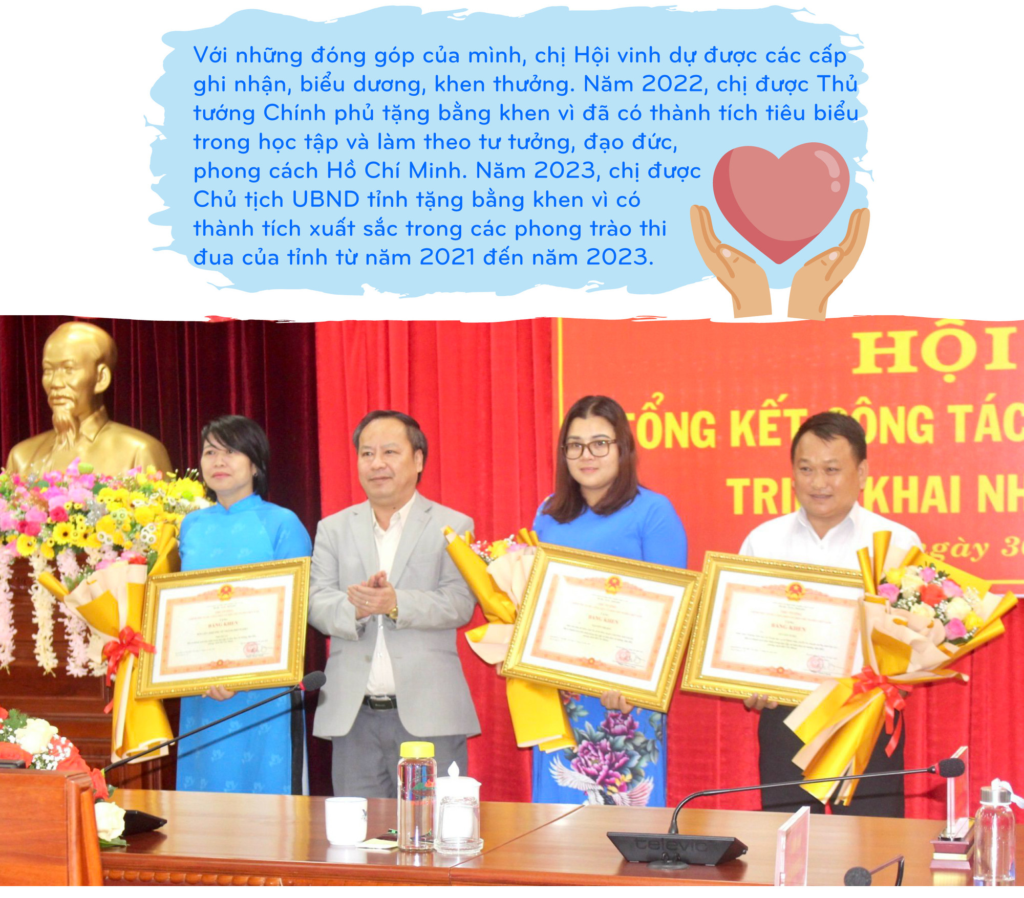 Chưa hết, chị Hội còn hỗ trợ gia đình 4 con heo giống làm phương tiện sinh kế. Năm học 2023-2024, chị nhận giúp đỡ cháu Huỳnh Thị Như Ý (con gái thứ hai của bà Lý) đang học lớp 8 tại Trường THCS Phan Bội Châu số tiền 500 ngàn đồng/tháng. Đang chữa bệnh tại TP. Hồ Chí Minh, qua điện thoại, bà Lý bày tỏ sự cảm kích trước tấm lòng của chị Hội cũng như những Mạnh Thường Quân đã giúp gia đình bà vơi bớt vất vả.