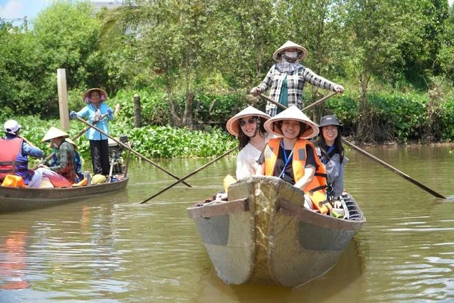 "Đó là khung cảnh nhộn nhịp của kẻ bán người mua ngay trên sông. Người mua ở xuồng này, đưa tay ra để nhận bánh tét, trái cây từ người bán đang ngồi trên xuồng khác. Nhóm chúng mình có 6 người, thì tất cả đều nhận định chuyến đi chợ nổi là kỷ niệm khó có thể quên", Tài kể.