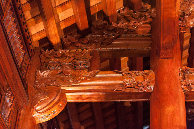 Những nét chạm khắc tinh xảo trên gỗ lim nguyên khối.