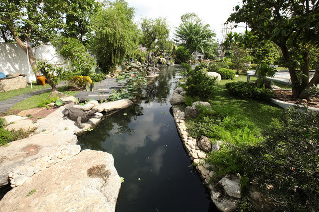 Khuôn viên được xây dựng bề thế xung quanh căn nhà.