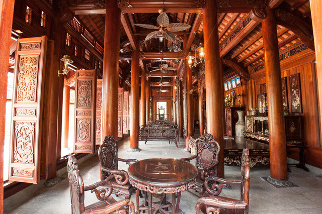 Bên trong, nội thất cũng được chăm chút đầu tư rất kỳ công và được làm chủ yếu bằng gỗ trắc.
