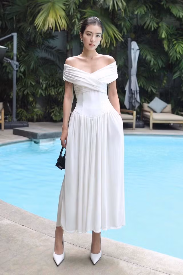| Với những buổi tiệc cuối tuần, các sự kiện ban ngày thì váy dài màu trắng đứng phom sẽ là những lựa chọn thông minh. Trang phục có phom dáng tối giản, được nhấn nhá thêm bằng các chi tiết vặn xoắn, thắt nơ hay cổ bắt chéo... giúp nàng khoe khéo những đường nét đẹp nhất trên cơ thể mà vẫn đảm bảo hình ảnh lịch thiệp, hiện đại. |