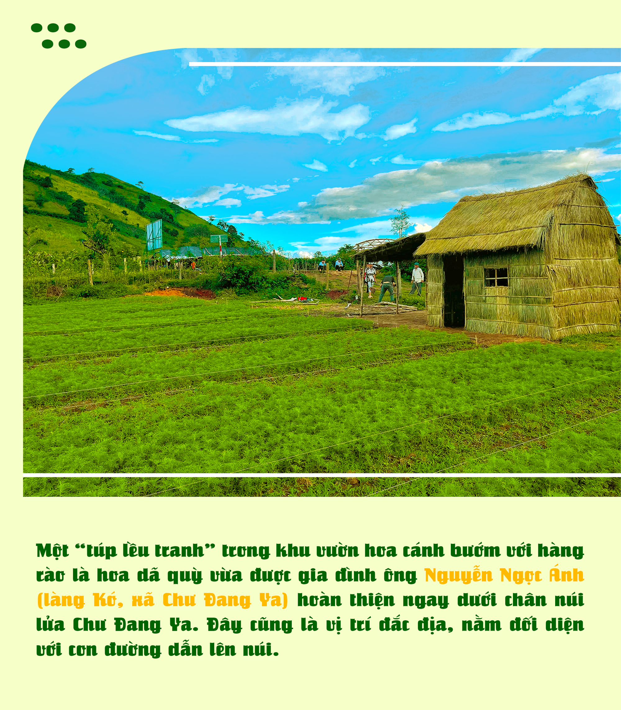Ông Ánh chia sẻ: Là một người nông dân, ông luôn cảm thấy bình yên thư thái khi ngồi trong khu vườn đầy hoa trái. Vì vậy, ông muốn tái hiện lại khung cảnh ấy để du khách trải nghiệm và có những tấm hình check-in thật đẹp. Toàn bộ cỏ tranh để làm cổng vườn và nhà đều được ông cắt trên núi Chư Đang Ya.