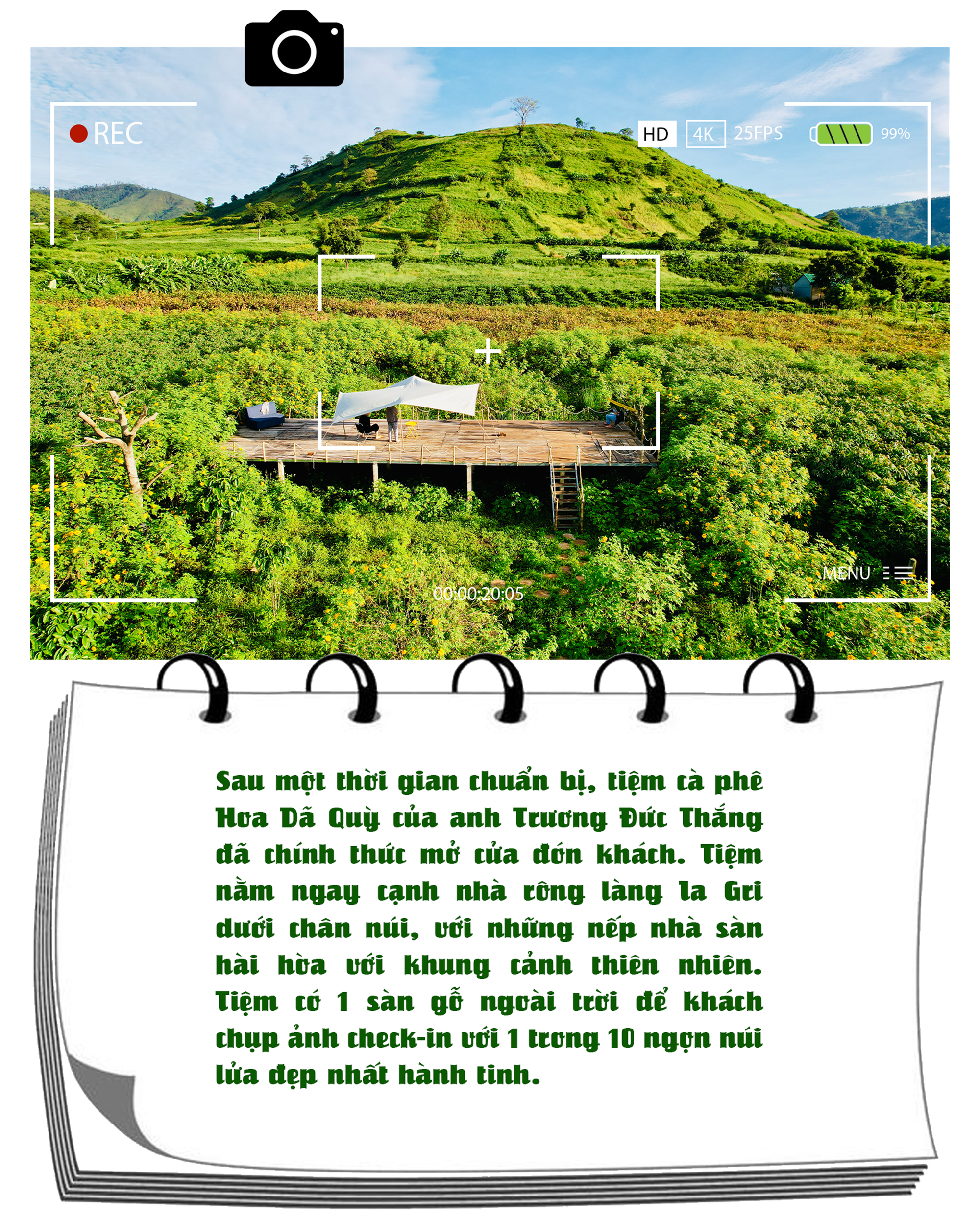 Là người đầu tiên mạo hiểm đầu tư quán cà phê ở điểm du lịch này, anh Thắng cho hay, mong muốn của anh là đặt nền móng để có thể tạo ra một “hệ sinh thái du lịch” ở đây. Anh hy vọng mùa lễ hội năm nay, tiệm cà phê sẽ có đông du khách đến tham quan, chụp ảnh. Chỉ cần mỗi du khách đăng một vài hình ảnh núi lửa Chư Đang Ya lên mạng xã hội cũng sẽ giúp lan tỏa rộng rãi vẻ đẹp của thắng cảnh với bạn bè, du khách trong và ngoài nước. Người dân ở các làng quanh chân núi thấy được hiệu quả của loại hình dịch vụ sẽ cùng nhau làm du lịch, tạo nên sự đặc sắc, hấp dẫn riêng cho điểm đến này.