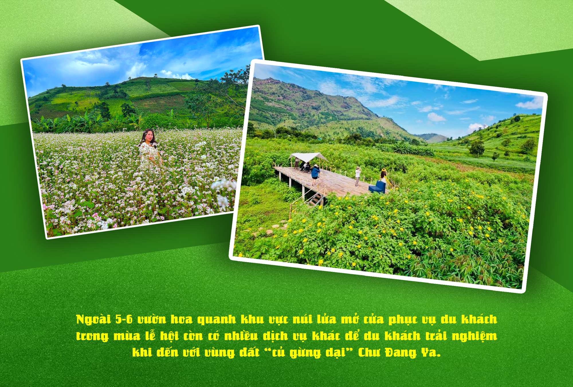 | Du khách tham quan núi lửa Chư Đang Ya và chụp ảnh tại vườn hoa tam giác mạch trước thềm lễ hội. Ảnh: Hoàng Ngọc |