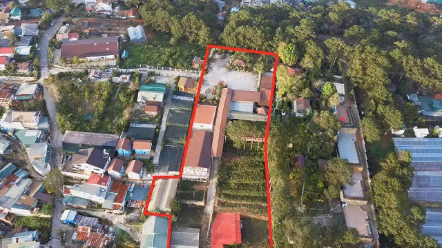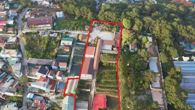 Khuôn viên nhà hàng Trên Đỉnh Đồi Trăng (khoanh đỏ) của ông Nguyễn Minh Tiến với nhiều vi phạm.