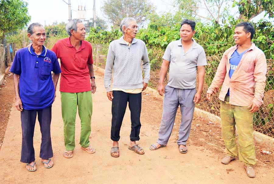 | Người dân làng Kênh (xã Nghĩa Hòa, huyện Chư Pah) trao đổi kinh nghiệm xây dựng đời sống văn hóa. Ảnh: ĐINH YẾN |