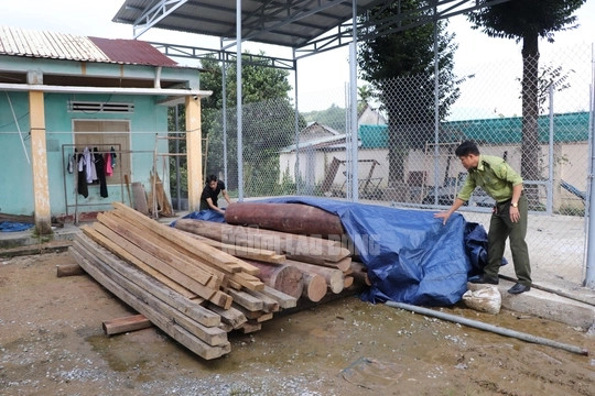 Qua kiểm tra, tại lô đất đối diện số nhà 49 đường Quang Trung (thị trấn Khâm Đức) có 14 lóng gỗ tròn và 77 hộp, thanh gỗ xẻ. Tổng khối lượng hơn 4,9 m3, được cất giữ trái pháp luật.