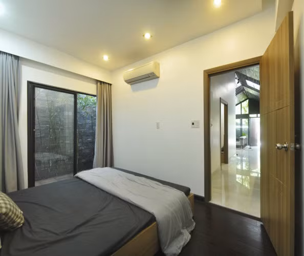 Phòng ngủ nhỏ nhưng vẫn thoáng và ngập ánh nắng.