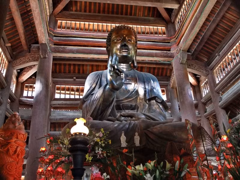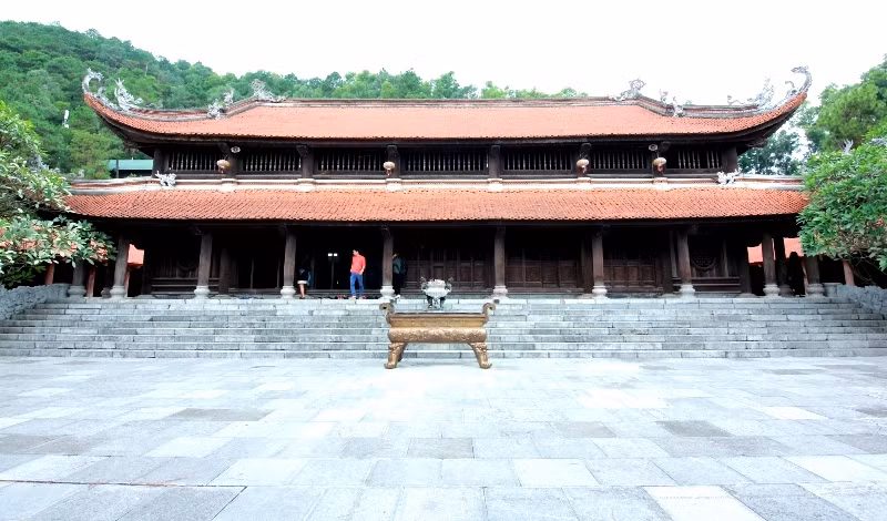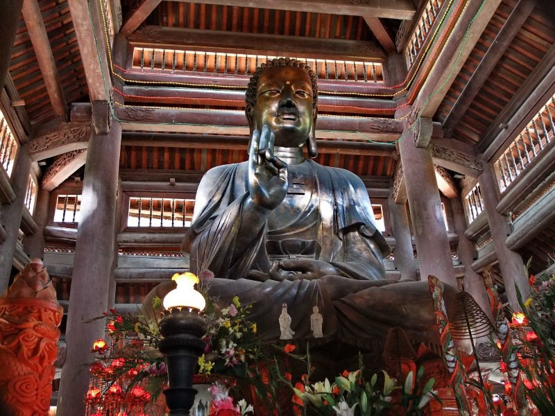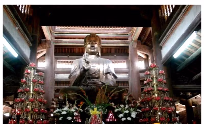 Tòa chánh điện có diện tích 260m2, cao 14m. Để xứng với vai trò ngôi chùa di tích của đất địa linh và là chốn Tổ đình xa xưa, công trình này đã sử dụng 30 tấn đồng đúc tượng, 600m3 gỗ lim, 30m3 đá xanh.