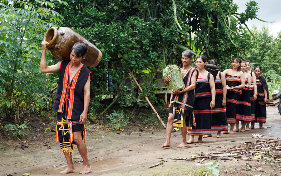 | Để chuẩn bị cho đám cưới, dân làng chuẩn bị các sản vật từ sông suối, rẫy như: đọt mây đắng, rau măng, chim, thú, cá. |