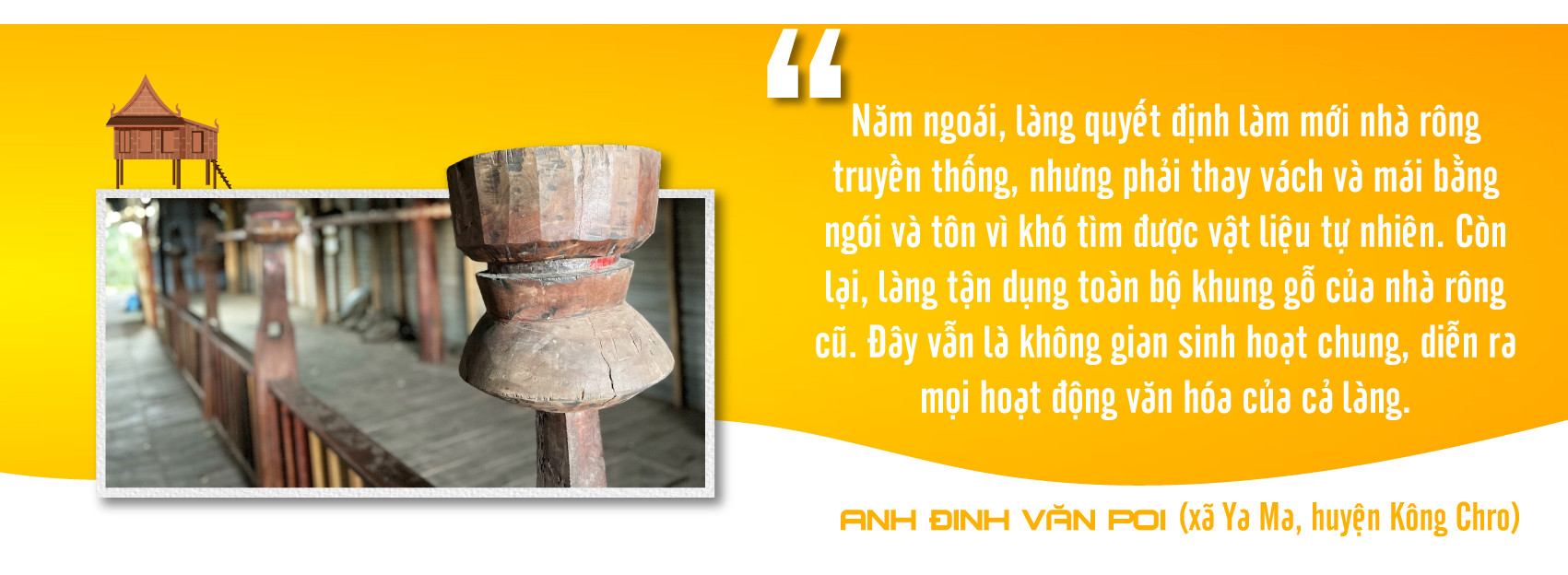 Ông Tạ Văn Chinh-Trưởng phòng Văn hóa-Thông tin huyện-cho biết: Người Bahnar rất có ý thức bảo tồn nhà rông, bởi đây là biểu tượng văn hóa, tinh thần của cộng đồng. Hầu như làng nào cũng có nhà rông. Dù lớn hay nhỏ, hàng năm, các làng đều tổ chức cúng nhà rông, sửa chữa khi bị hư hỏng, hoặc góp tiền, góp sức để làm mới. Tuy nhiên, một số làng không giữ được kiến trúc nhà rông truyền thống mà pha trộn cách làm nhà theo kiểu mới. Thời gian qua, ngành Văn hóa đã đẩy mạnh công tác tuyên truyền, vận động người dân nâng cao nhận thức, chung tay bảo tồn nhà rông nói riêng và bảo tồn bản sắc dân tộc mình nói chung.