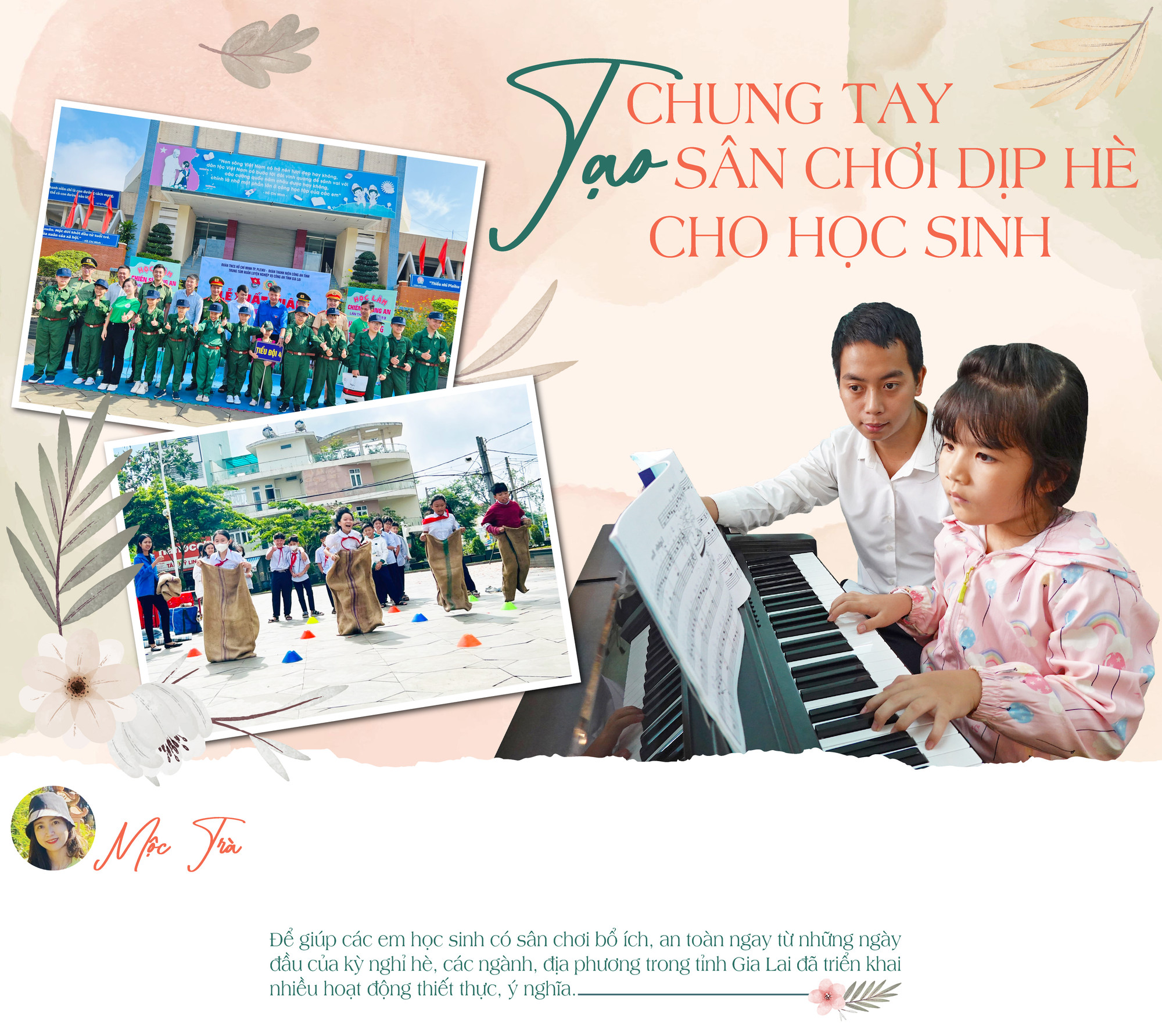 Tại các địa phương vùng khó, hoạt động hè cũng được chú trọng triển khai. Ông Đinh Văn Súy-Phó Chủ tịch UBND huyện Kông Chro-cho biết: Vì trên địa bàn huyện thiếu sân chơi, phần đông học sinh là con em đồng bào dân tộc thiểu số nên ngay từ khi chuẩn bị kết thúc năm học 2022-2023, UBND huyện đã chỉ đạo Huyện Đoàn và các xã, thị trấn xây dựng kế hoạch để tổ chức các sân chơi bổ ích, lành mạnh cho các em trong dịp hè; cải tạo sân bóng đá, bóng chuyền, khu vui chơi và duy trì hoạt động nhà văn hóa, nhà sinh hoạt cộng đồng tại các làng để học sinh có nơi vui chơi, sinh hoạt. Cùng với đó, tiếp tục đẩy mạnh tuyên truyền, giáo dục và tăng cường giải pháp đảm bảo an toàn cho trẻ tại khu dân cư, các công trình đang thi công, khu vực ao, hồ, sông, suối.