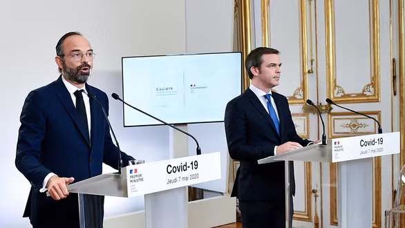 Bộ trưởng Bộ Đoàn kết và Y tế Pháp Olivier Véran (phải) không tin tưởng liệu pháp hydroxychloroquine - Ảnh: REUTERS