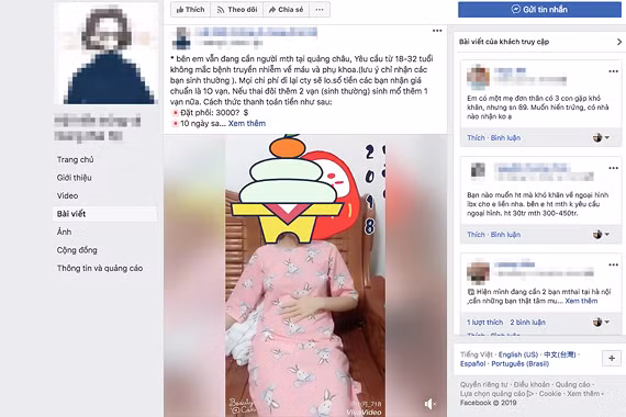 Kiếm người mang thai hộ qua mạng xã hội để thu lợi