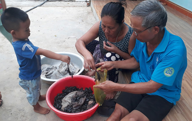 Chỉ vào thau bọ cạp, ông Hiền nói: “Con lớn bán khoảng 5.000 - 6.000 đồng. Trừ một số con chết, chừng này cũng kiếm được 300.000 - 400.000 đồng. Người ta mua để làm món ăn, nhưng phần lớn ngâm rượu. Khách hàng của tôi khắp nơi, nhiều nhất là ở miền Bắc”.