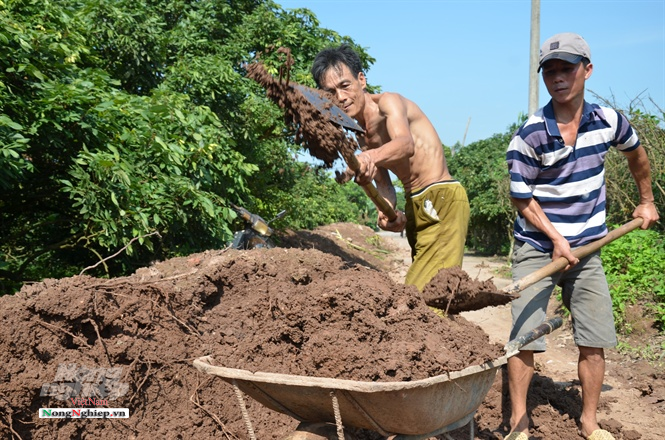 Nói đâu xa, như vụ nhãn năm ngoái, sau khi trừ tất chi phí, gia đình ông Ân chỉ còn được 7 triệu, chia đều cho 2 vợ chồng già, mỗi tháng mỗi người chỉ được xấp xỉ 300.000 đồng. Họ phải vay mượn thêm 25 triệu để cầm cự đến vụ này thì cây lại chẳng đậu quả. Dưới cái nóng hơn 40oC ông vẫn lao ra ngoài mà cào đám đất phù sa mới đổ xuống vườn. Cứ 2 - 3 năm một lần, các nhà vườn ở đây lại phải mua đất phù sa sông Hồng về cho nhãn “ăn” như vậy để cây chóng phục hồi sức khỏe. Mỗi xe đất giá 400.000 đồng cộng thêm 200.000 đồng vận chuyển nữa nên đổ đủ cho 7 sào nhãn ông Ân mất đúng 20 triệu.