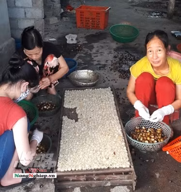 Ngay cả đống vỏ nhãn sau khi bóc xong chất trong góc vườn cũng rất lâu bị thối chứ không như nhãn ta. Mỗi kg nhãn sau khi bóc được trả công 4.000 đồng. Một lao động khỏe mạnh và chăm chỉ mỗi ngày có thể bóc được 30kg, thu nhập được 120.000 đồng.