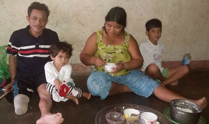 Người đàn ông đó là anh A Nức (SN 1970, dân tộc Bana, hiện ở làng phong Quy Hòa, TPQuy Nhơn, tỉnh Bình Định). Phía sau bậu cửa, 4 người trong gia đình đang ăn trưa, một nồi cơm và chén mắm dằm cà nướng. 2 đứa nhỏ lóng ngóng, cơm rơi vãi ra cả ngoài mâm cơm.