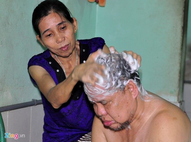 Do bệnh tật nặng, hàng ngày bà Hà phải tắm gội cho chồng. Ông Lem, cho hay cả hai bệnh nặng nên khi nghe vợ mang thai, sinh con trai đầu lòng khỏe mạnh, tập thể y, bác sĩ và bà con ở làng phong nơi đây ví như phép nhiệm màu.