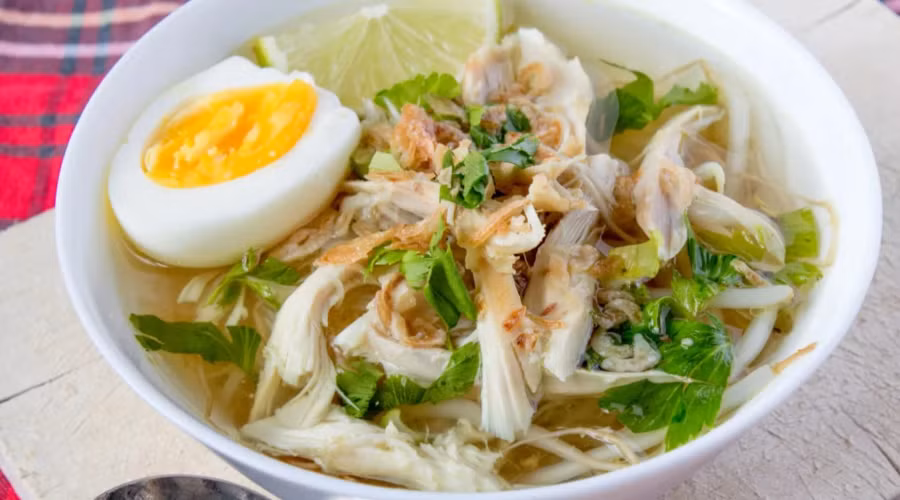 Súp phở gà có thể đạt đến đỉnh cao ẩm thực trong món ăn Indonesia thơm ngon này. Các loại gia vị như nghệ tươi, hoa hồi, quế, sả và lá chanh hòa quyện tạo nên mùi thơm và hương vị đậm đà, cùng lòng đỏ trứng luộc chín mềm để tăng thêm vị đậm đà.