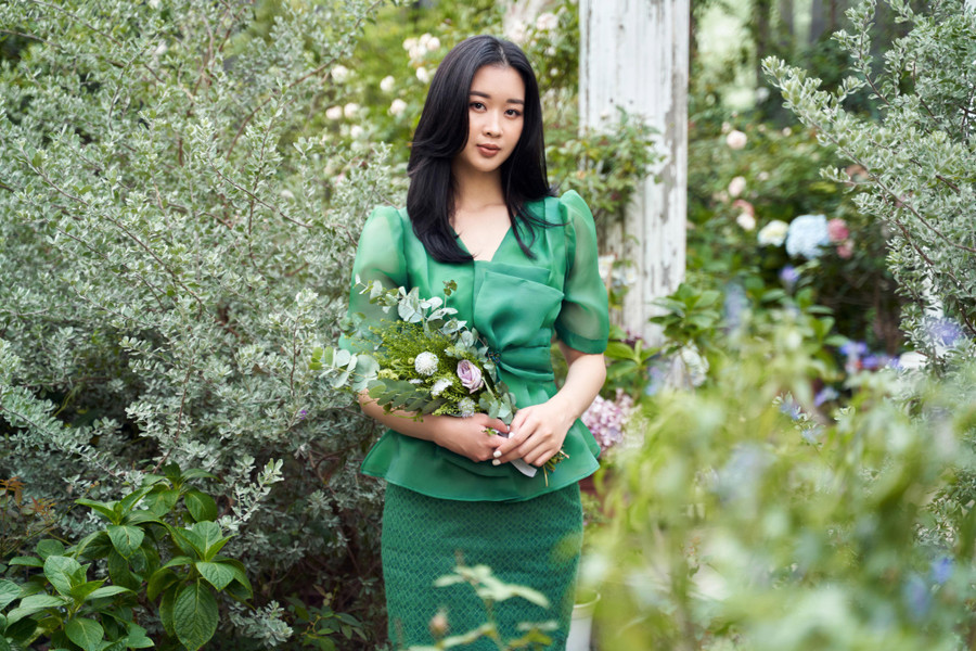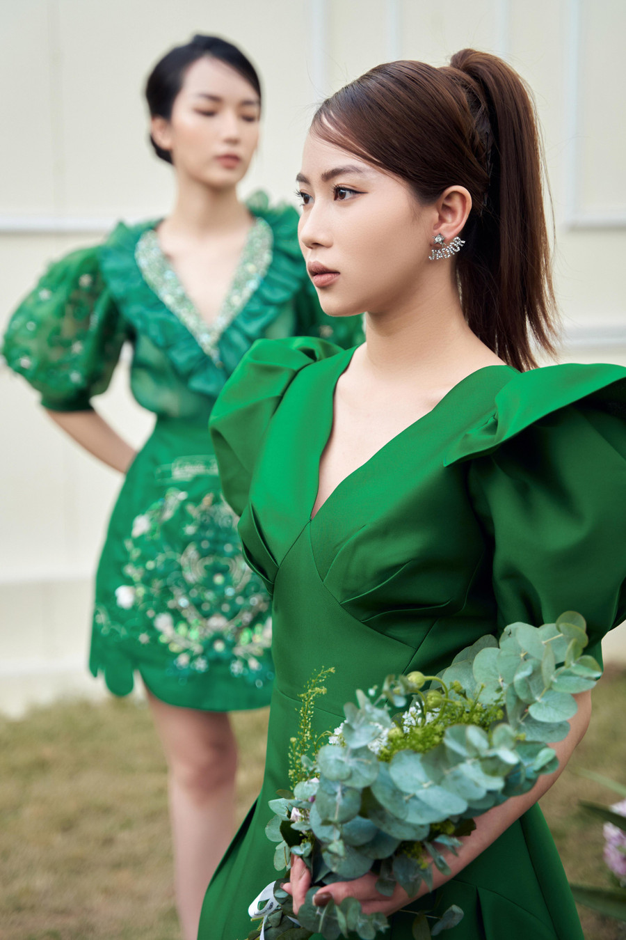 | Kết hợp sắc xanh xu hướng mới mẻ, đường cắt may tinh tế cùng đính kết tỉ mỉ đã tạo nên chiến dịch Gardenia đầy sáng tạo, ấn tượng. |