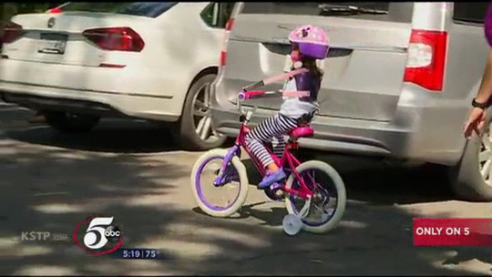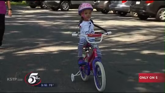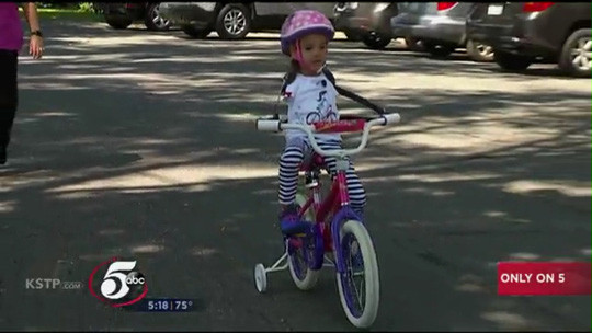 Cô bé lại rất thích đạp xe đạp, nhưng lại không muốn gắn đôi tay giả, bé bảo là dù mình không có tay, bé muốn làm được những điều giống như bao trẻ bình thường khác. Bố mẹ bé đã nhờ các chuyên gia chỉnh hình ở bệnh viện dành cho trẻ khuyết tật Gillette, thành phố St Paul, Minnesota, nghĩ cách giúp bé có thể điều khiển tay lái xe đạp.