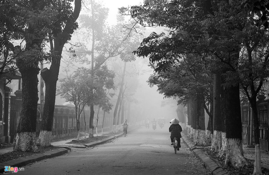 Những con đường phủ đầy sương trắng như những bức họa.