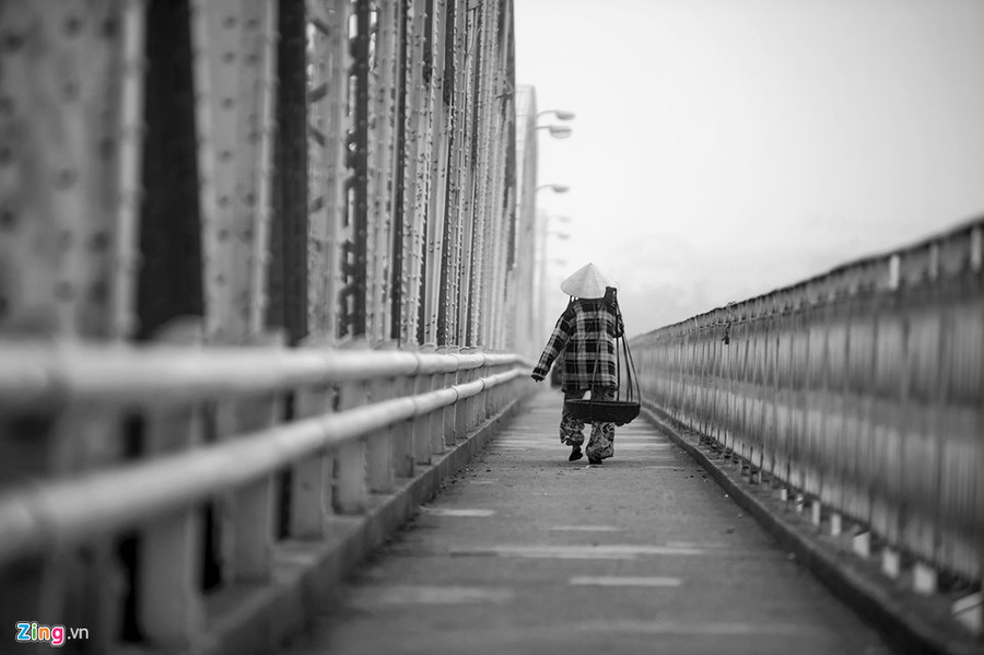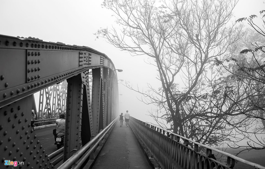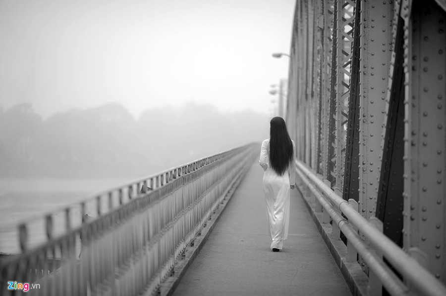 Hình ảnh những nữ sinh áo dài trắng nhẹ bước trên cầu Trường Tiền là hình ảnh đầy chất thơ trong những sáng mờ sương.