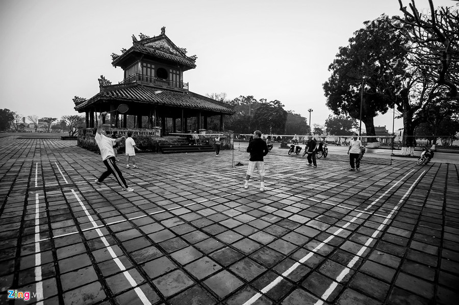 Những người dân đi thể dục quanh khu Đại nội.