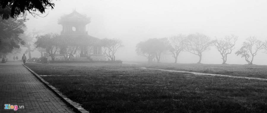 Cả thành phố như chìm trong một miền hư ảo, Huế càng thơ trong cái không gian mờ nhân ảnh.