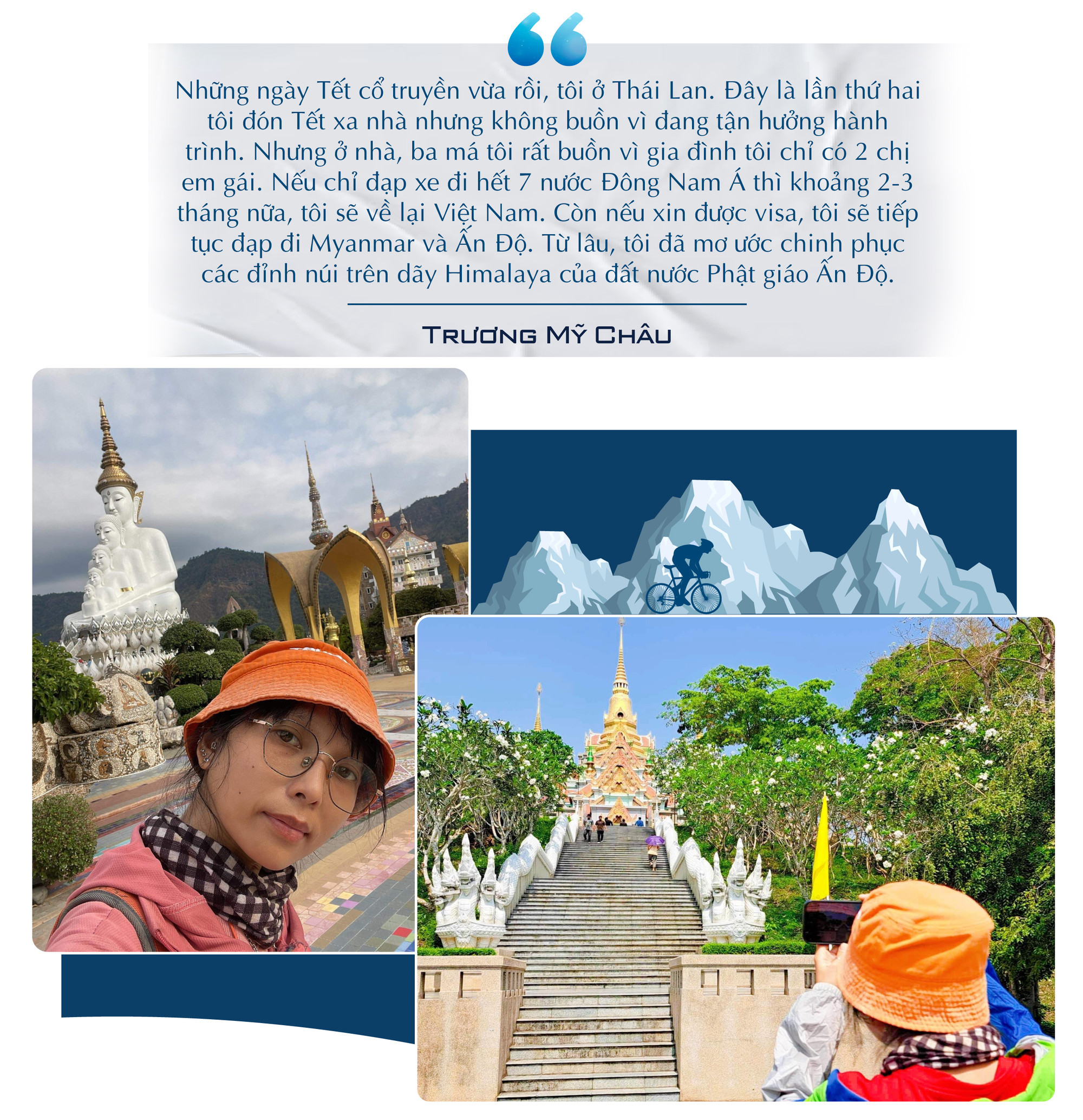 Sau hành trình xuyên Việt, ngày 25-10-2023, cô gái 9X bắt đầu hành trình đạp xe qua 7 nước Đông Nam Á. Từ Gia Lai, Tiểu Châu đạp xe lên Cửa khẩu Quốc tế Bờ Y (tỉnh Kon Tum) để qua đất nước Lào xinh đẹp. Đến thời điểm này, Châu đã đạp xe qua 2 nước là Lào, Thái Lan và đang ở Malaysia. Từ đây, “viên ngọc nhỏ bé” đã có cuộc chia sẻ với chúng tôi về hành trình của bản thân.