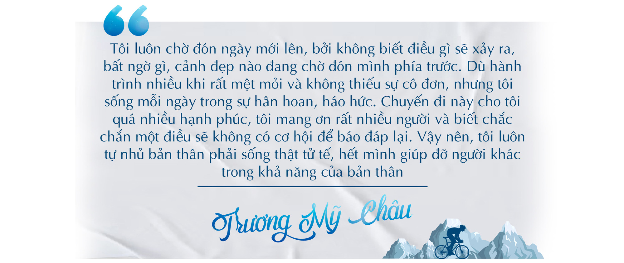 Lần đầu tiên tôi gặp Trương Mỹ Châu (tên thường gọi là Tiểu Châu) vào cuối năm 2023. Khi đó, Châu vừa kết thúc hành trình xuyên Việt bằng xe đạp, về Gia Lai thăm nhà trước khi xuyên Á qua 7 nước: Lào, Thái Lan, Malaysia, Singapore, Indonesia, Brunei và Philippines.
