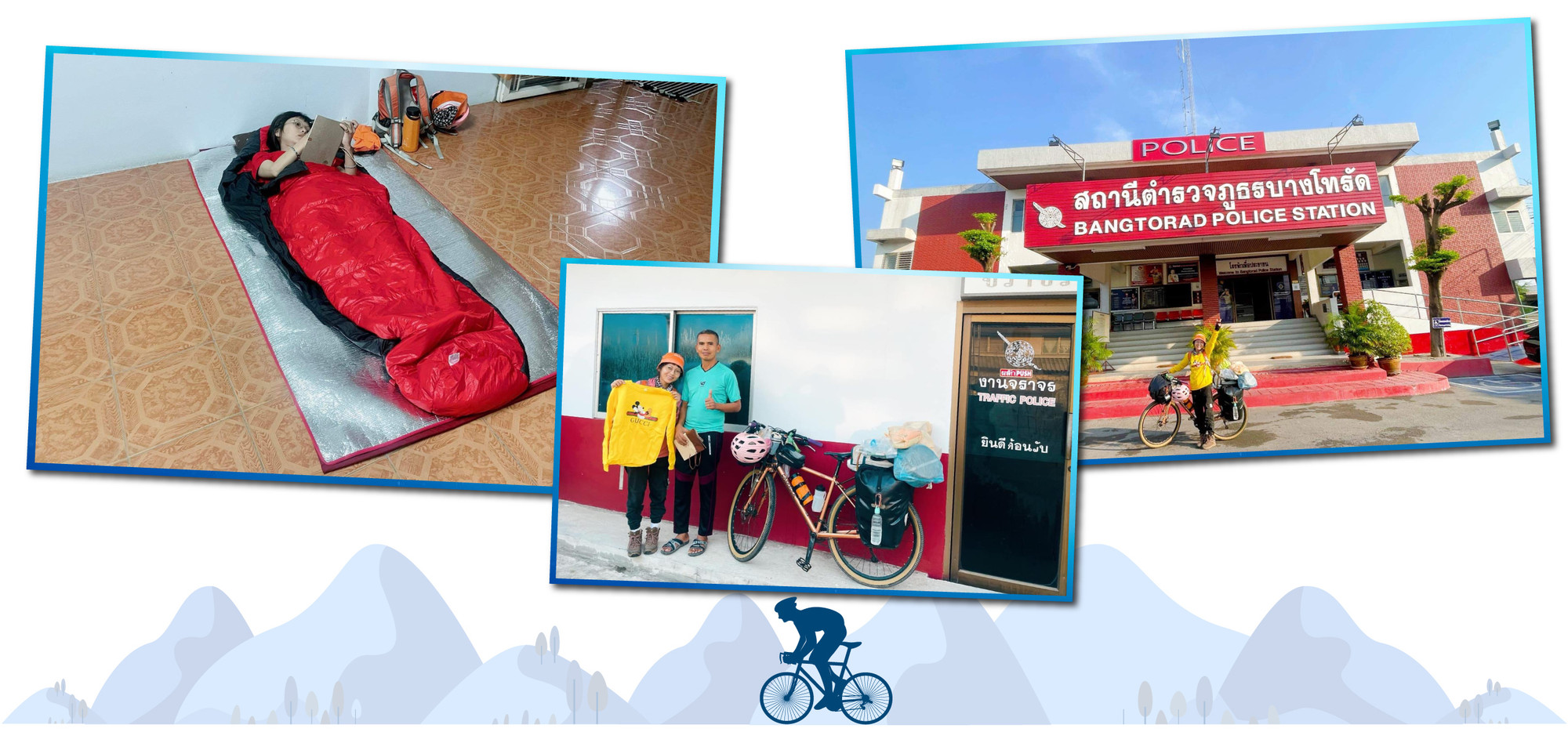 Châu kể thêm: “Chi phí đi bụi của tôi qua mỗi nước tối đa chỉ khoảng 50 USD, mỗi ngày chi tiêu khoảng 35-40 ngàn đồng tiền Việt. Trong đó, tôi chỉ tốn tiền ăn, còn ngủ hoàn toàn miễn phí. Ở Lào, tôi thường hạ trại ngủ trong rừng, qua Thái thì xin ngủ trong đồn cảnh sát, đến Malaysia lại xin ngủ ở các nhà thờ. Cũng có khi gặp được người tốt, họ còn thuê khách sạn, mời những bữa ăn ngon miễn phí. Mọi người thường ồ lên thể hiện sự khâm phục khi nghe tôi nói về hành trình đạp xe xuyên Á, nhất là thấy tôi nhỏ bé như vậy. Có người còn cho tiền, nhưng tôi không nhận”.