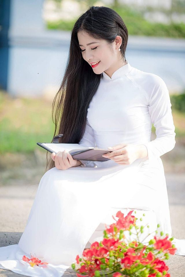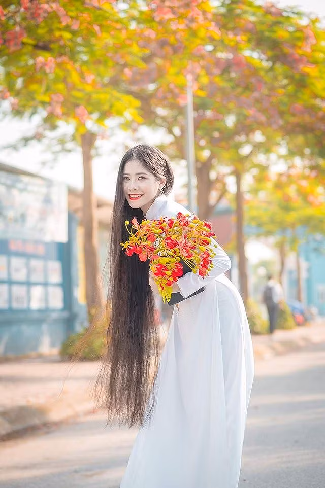 “Mình có tình cảm đặc biệt với tà áo dài trắng, đó cũng là sự lựa chọn của mình trong những dịp đặc biệt. Đất trời sinh ra muôn vàn loài hoa với những nét đẹp quyến rũ khác nhau, mỗi mùa hoa mình vẫn thường lưu giữ lại những khoảnh khắc đẹp đẽ và thiêng liêng của thành phố với trang phục là áo dài truyền thống.