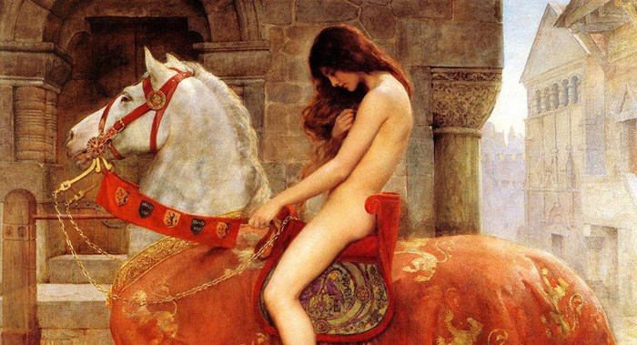 Lady Godiva là một phụ nữ quý tộc ở thế kỷ 11 kết hôn với Leofric- Bá tước uy quyền của vùng Mercia. Khi cuộc hôn nhân của họ mới chớm nở, Lady Godiva đã gặp một số rắc rối bởi các loại thuế do chồng mình là Leofric đã đánh vào các công dân trong vùng. Sau khi cô liên tục yêu cầu ông ta giảm bớt gánh nặng, Bá tước Leofric đã châm biếm rằng, ông ta sẽ chỉ giảm thuế cho người dân khi cô cưỡi ngựa trần truồng qua trung tâm thị trấn.