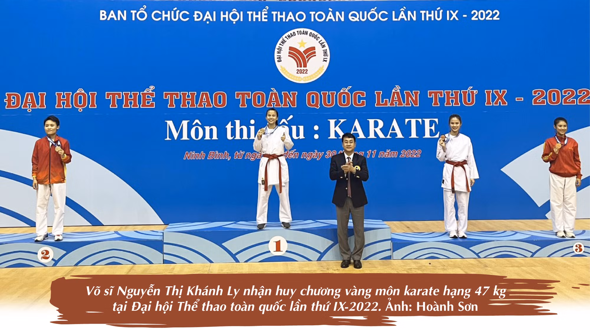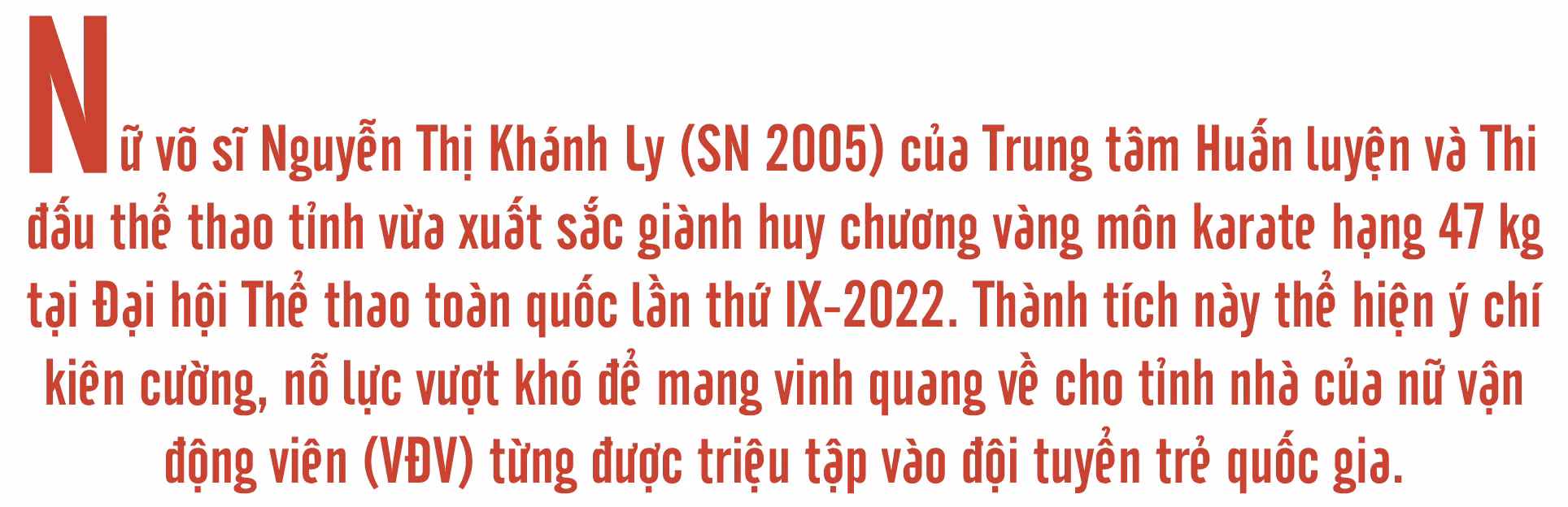 Còn nhớ, khoảng giữa năm 2018, một lần tình cờ, khi nghe tôi hỏi về gương mặt sáng giá của CLB có khả năng gia nhập đội tuyển karate tỉnh, anh Phan Nguyên Trị trả lời ngay là Nguyễn Thị Khánh Ly. Anh bảo: “Dù không sinh ra trong gia đình có truyền thống võ thuật nhưng Khánh Ly rất có tố chất. Nhiều bài khó, với bạn khác, tôi phải chỉ nhiều lần, nhưng với Khánh Ly chỉ cần 1-2 lần là làm được. Ngay lúc thi đấu với đối thủ có thân hình cao lớn, học võ trước, Khánh Ly vẫn rất tự tin. Thế nên, trong 3 năm (2016-2018), khi thi đấu Giải Vô địch Karate các CLB do tỉnh tổ chức, em đều mang huy chương về cho CLB”. Ít lâu sau, huấn luyện viên trưởng đội tuyển karate tỉnh Phan Văn Hường hồ hởi khoe chuyện mới đi xem “giò cẳng” mấy võ sinh trẻ ở các CLB để tuyển vào Trung tâm Huấn luyện và Thi đấu thể thao tỉnh thì phát hiện ra Khánh Ly.
