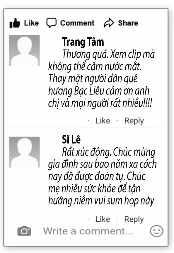 Lúc mới gặp, bà Hon không nói được tiếng Việt, chỉ giữ tờ giấy ghi tên tuổi, người thân... ở Bạc Liêu. Qua tìm hiểu, chị Thủy vô cùng xúc động khi biết bà Hon đã lưu lạc sang Trung Quốc 22 năm nhưng không biết đường tìm về gia đình. Do đó, bà Thủy cùng các thành viên chụp hình, quay clip rồi chia sẻ thông tin lên Facebook nhờ cộng đồng mạng tìm giúp.