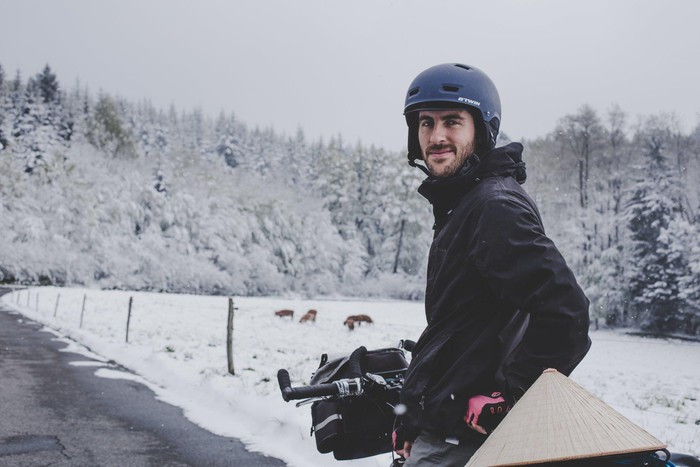 Nguyên đã gọi chiếc xe đạp của mình là "ngôi nhà nhỏ” vì chẳng thiếu thốn thứ gì, cần gì có nấy. Tổng trọng lượng đồ trên xe Nguyên là 18 kg còn Thibault khoảng 24 kg.