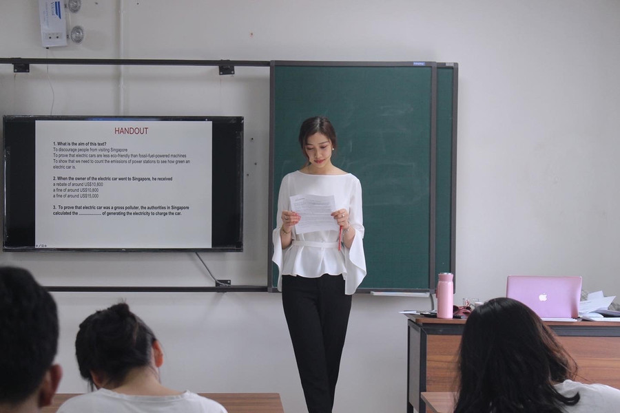 | Ngọc Mai tham gia giảng dạy tiếng Anh cho trẻ em. Ảnh: NVCC |