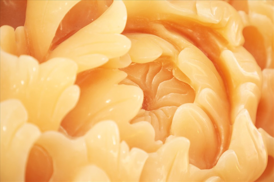 | Giỏ hoa được làm từ ngọc Hoàng Long và chế tác hoàn toàn thủ công. |