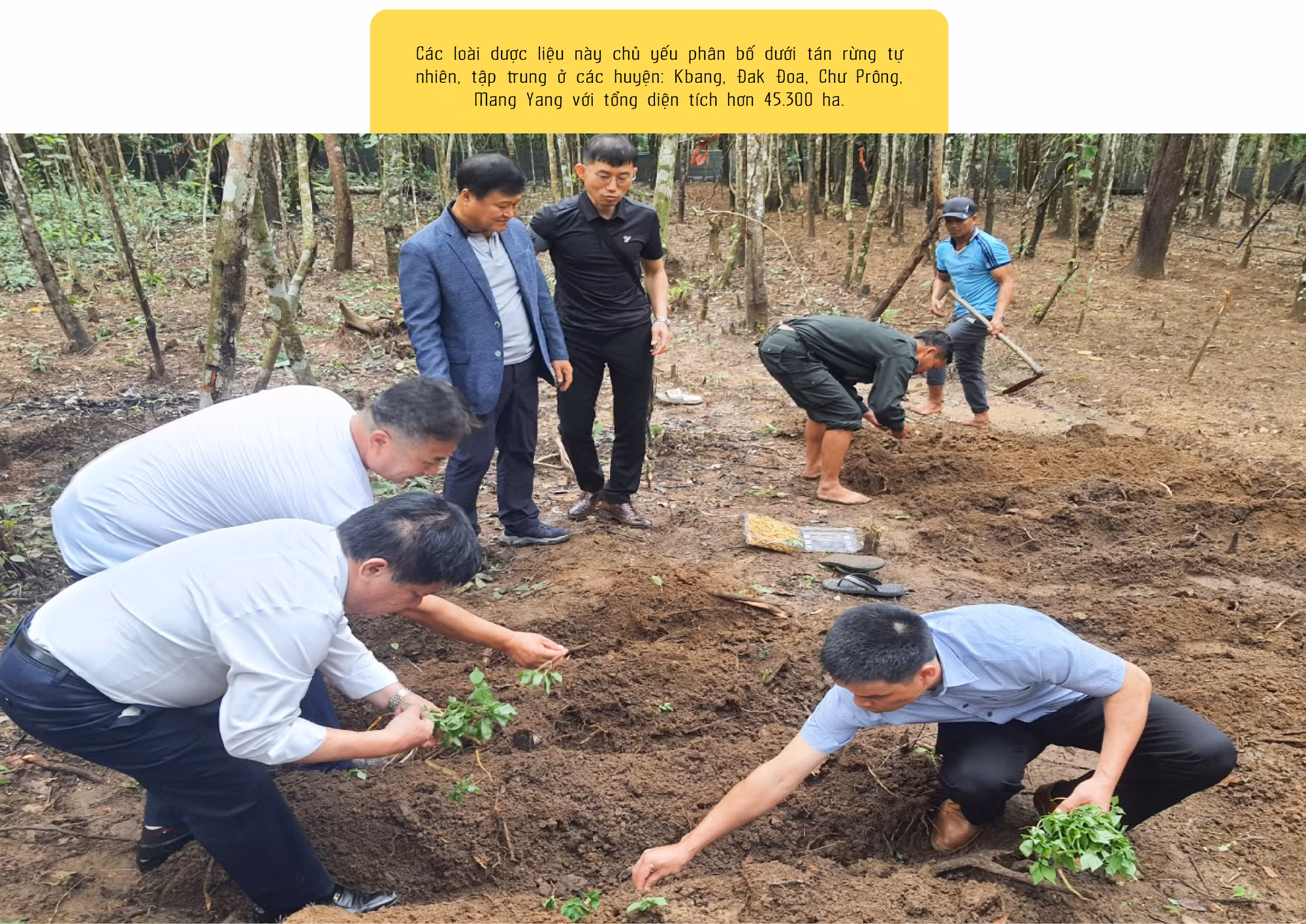 Hầu hết các loại dược liệu này được trồng với quy mô lớn, kỹ thuật bài bản. Có thể kể đến như mô hình trồng sâm bố chính của Hợp tác xã Nông nghiệp dược liệu Quang Vinh (thôn 1, xã Sơ Pai, huyện Kbang) cho năng suất 6 tấn tươi/ha, lợi nhuận khoảng 335 triệu đồng/ha; mô hình trồng xen cà gai leo trong vườn cà phê tại xã Ia Tiêm (huyện Chư Sê) cho năng suất 30 tấn/ha, lợi nhuận 40-50 triệu đồng/ha… Đặc biệt, tỉnh cũng đã hình thành 3 cơ sở chế biến dược liệu của Công ty TNHH Phát triển khoa học quốc tế Trường Sinh, Công ty cổ phần Đông Nam Dược Gia Lai (Khu Công nghiệp Trà Đa, TP. Pleiku) và Nhà máy dược liệu tại Cụm Công nghiệp-Tiểu thủ công nghiệp huyện Chư Păh.