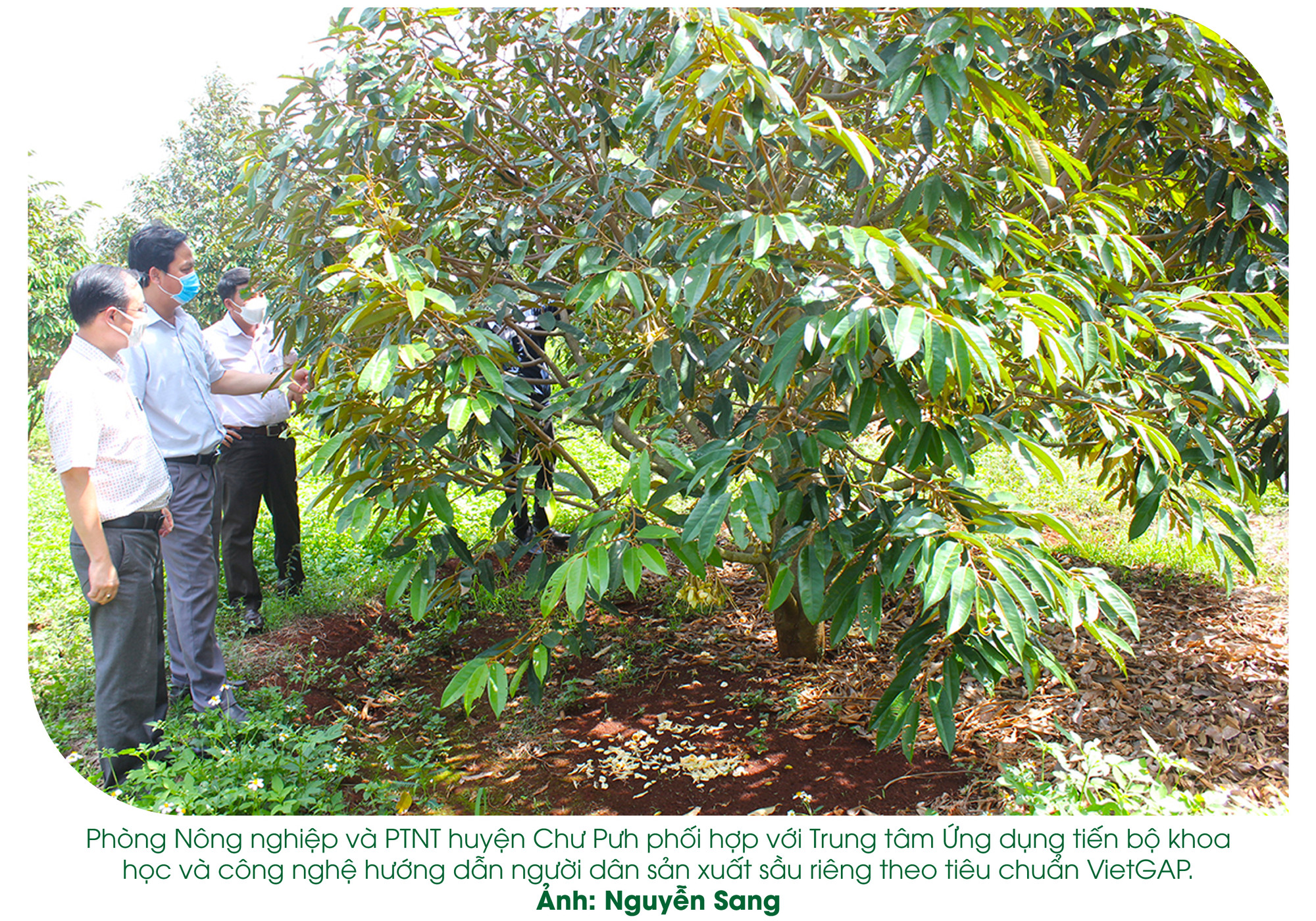 Ông Nguyễn Minh Tứ-Phó Chủ tịch UBND huyện Chư Pưh-cho biết: Để hỗ trợ người dân canh tác sầu riêng hướng đến mục tiêu xuất khẩu chính ngạch, huyện phối hợp với các cơ quan chuyên môn của tỉnh và một số doanh nghiệp vận động bà con nông dân sản xuất theo tiêu chuẩn VietGAP, GlobalGAP và xây dựng mã vùng trồng.