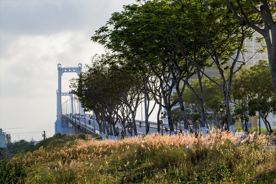 | Cỏ lau đỏ hồng, nhuộm chiều xuân Đà thành. Ảnh: Lê Tuấn |