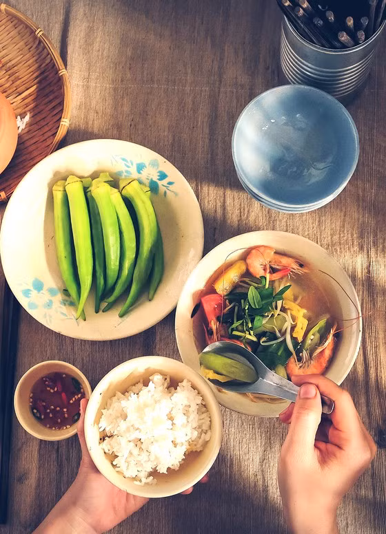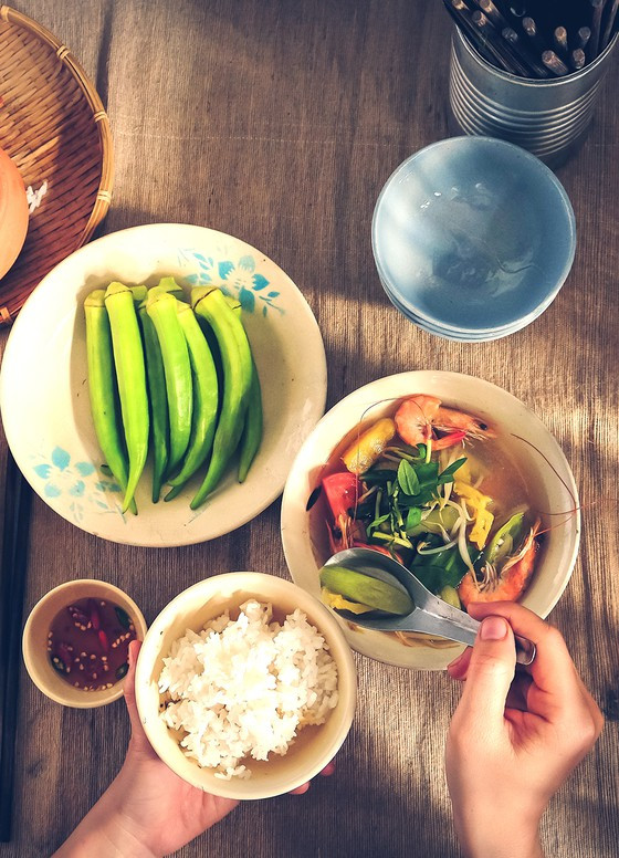Ăn cơm lính đã lâu, đủ đầy đấy, đông vui đấy mà nhiều hôm tôi thèm quay quắt bữa cơm quê do chính tay mẹ nấu. Cơm dẻo và canh ngọt từ lúa mẹ cấy, rau dại ngoài vườn, mấy chú cua đồng, thêm quả me chua cũng đủ ngon tê lưỡi. Chẳng cần phải món nọ món kia, nấu nướng cầu kỳ. Bữa cơm bình dị nuôi tôi lớn từng ngày bằng dưa cà mắm muối. Cơm ngon không chỉ bởi gạo trắng nước trong, mà lẫn đâu đó cả vị khói, mùi rơm rạ đồng quê. Mùi củi bạch đàn hăng hắc, mùi của yêu thương, mẹ chiu chắt trong bát cơm dẻo thơm, nồi cá kho đượm vị. Mùa nào thức ấy, những món ăn mẹ nấu tưởng mộc mạc thế thôi mà xuống phố có khi thành đặc sản.