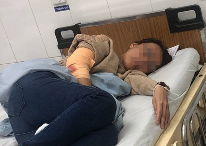 Chị Hương bị côn đồ đòi nợ thuê chém trọng thương, đang điều trị tại bệnh viện. Ảnh: Gia đình cung cấp