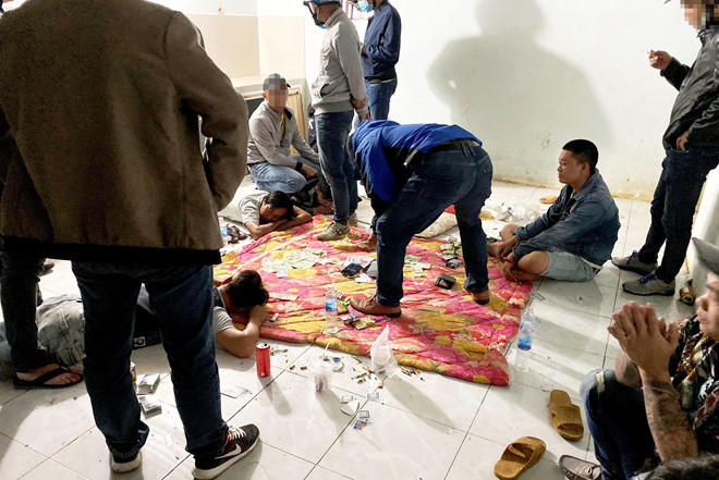 Sau nhiều ngày mật phục, nắm tình hình, vào khoảng 2 giờ 45 ngày 22.4, các trinh sát Đội Cảnh sát Hình sự Công an TP.Bảo Lộc đột kích vào căn nhà bỏ hoang trên đường Nguyễn Viết Xuân (thôn 8, xã Đam B’ri, TP.Bảo Lộc), bắt quả tang 7 người đang say sưa sát phạt nhau bằng hình thức đánh bài “liêng tố”.